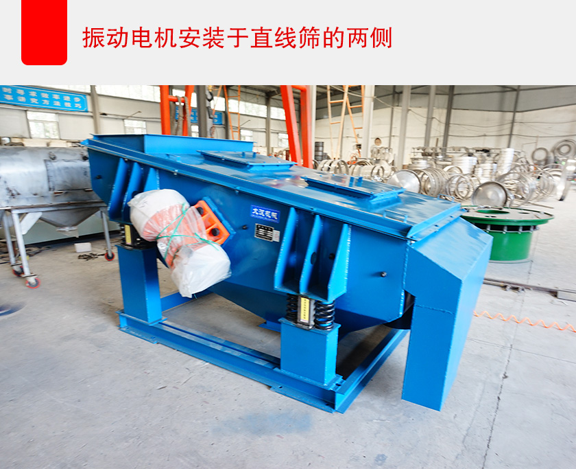 直線篩的篩箱的高度通常是一定的,所以不能對篩箱的高度做調(diào)整,那么可以將振動電機安裝在直線篩的兩側(cè),而不是安裝在設(shè)備的底部,這樣可以大大的降低設(shè)備的整體高度,滿足客戶對直線篩整體高度的限制要求,又不影響設(shè)備的工作效率。