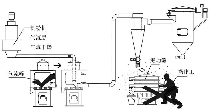 氣流篩作用于離心力并且不產(chǎn)生任何振動(dòng),因此在入口和出口處可以進(jìn)行剛性連接,而一般的振動(dòng)上工作并且在入口和出口處只能進(jìn)行柔性連接,靈活的連接增加了泄漏的機(jī)會(huì),空氣含塵量低于10mg/m3。