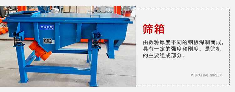 1、篩箱:由數(shù)種厚度不同的鋼板焊制而成,具有一定的強度和剛度,是篩機(jī)的主要組成部分。