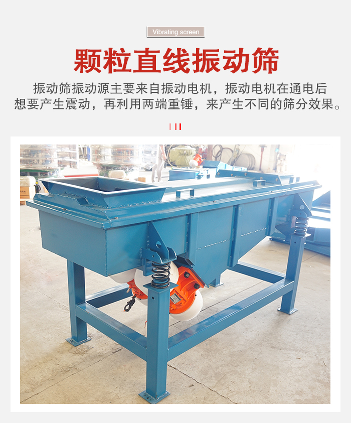 顆粒振動篩根據(jù)篩分原理主要分圓形和方形兩種結構,振動篩振動源主要來自振動電機,振動電機在通電后想要產(chǎn)生震動,再利用兩端重錘,來產(chǎn)生不同的篩分效果。