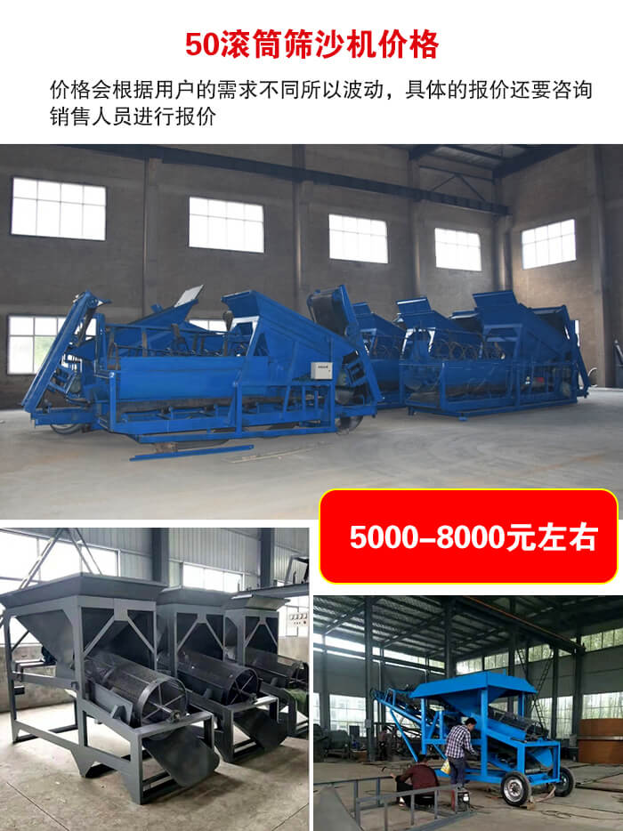 1,50滾筒篩沙機可進行定制改造服務例如:配有給料機,皮帶輸送機等設備,所以價格會根據(jù)用戶的需求不同所以波動,具體的報價還要咨詢銷售人員進行報價。